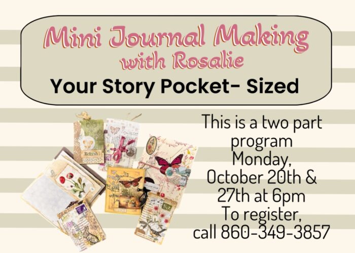 Join us for a two-part journal making class–Monday, October 20th & October 27th at 6 PM. Registration required.